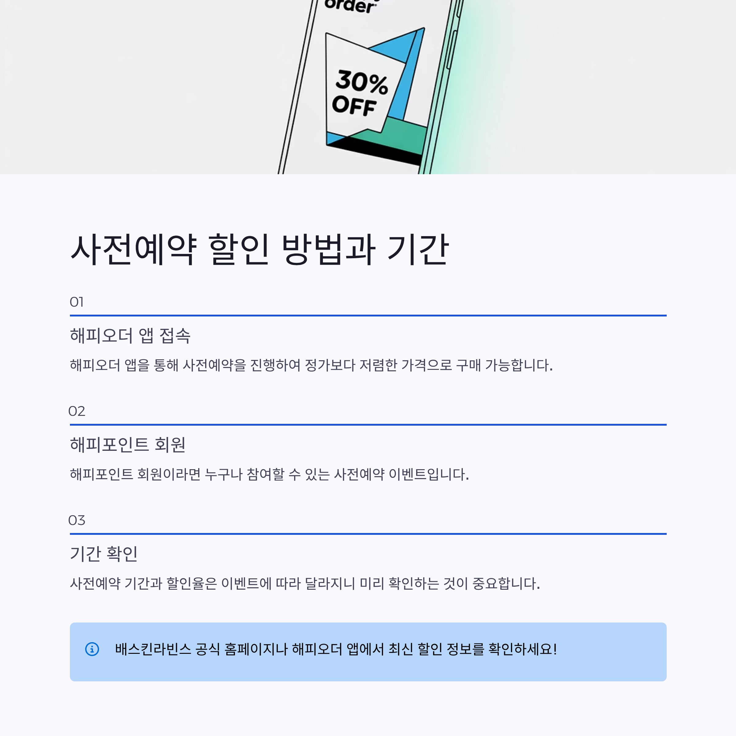 배스킨라빈스 메가팩, 해피오더로 쉽게 예약하기