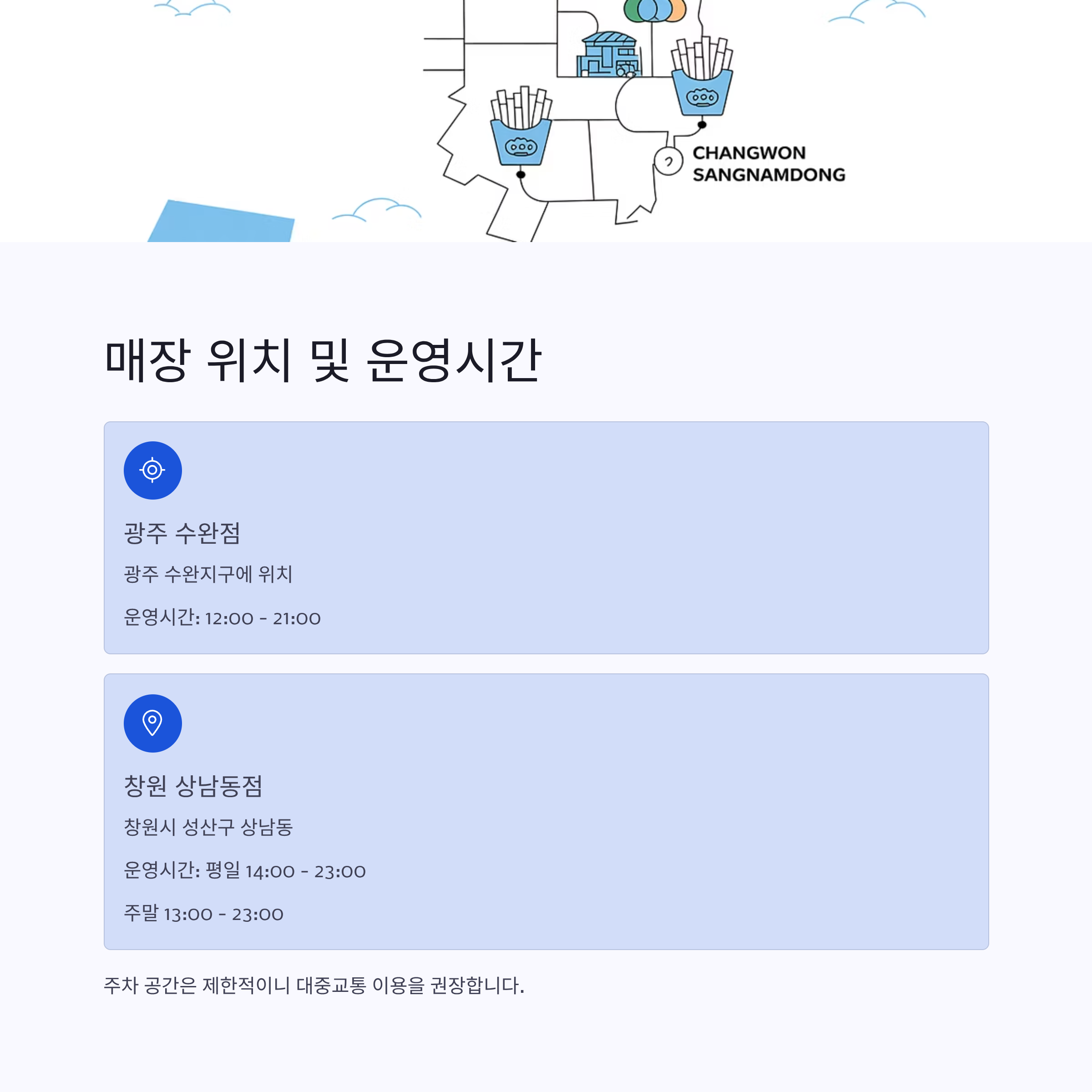 - 광주 수완점: 광주 수완지구에 위치, 12시부터 21시까지 운영