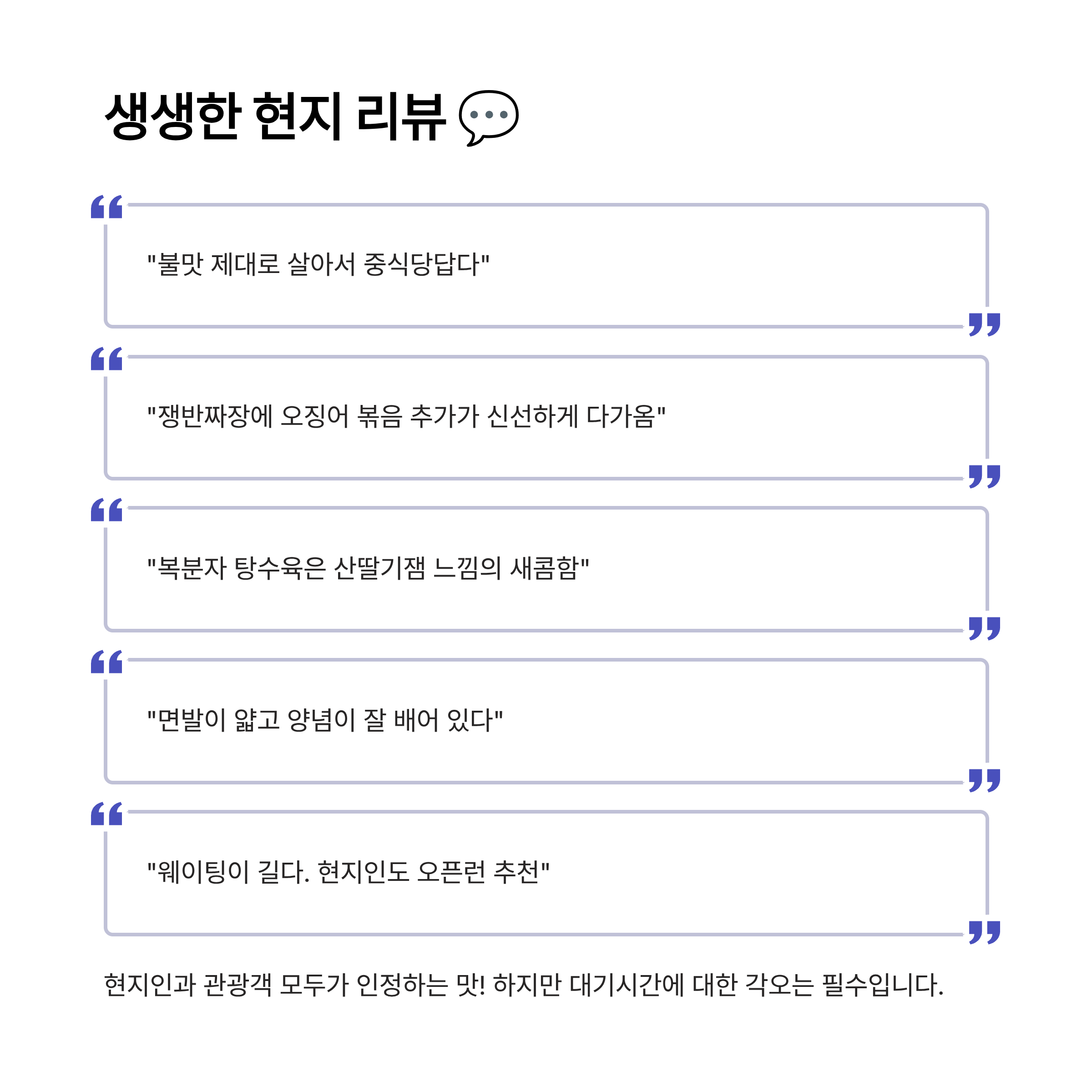- "웨이팅이 길다. 현지인도 오픈런 추천"