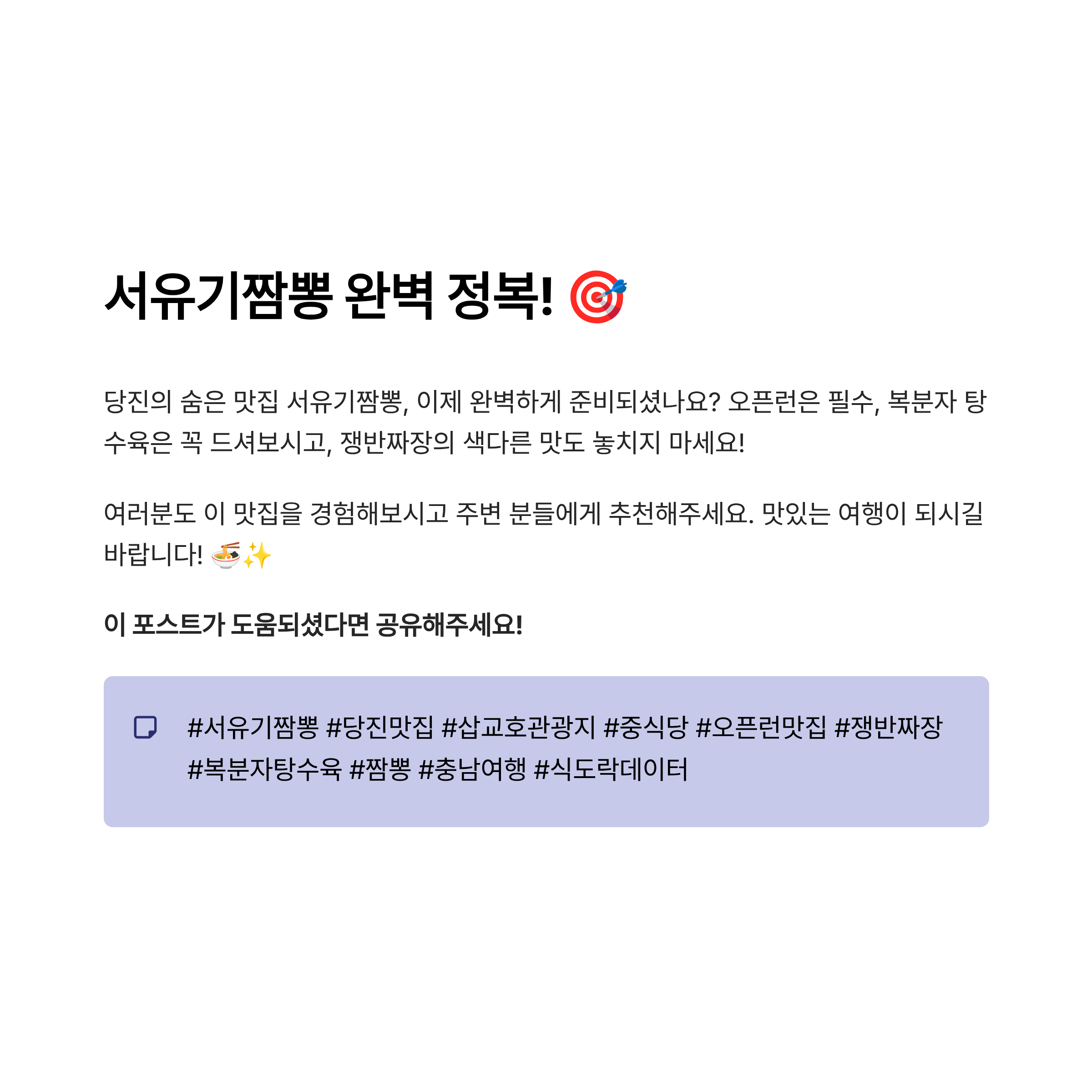 #서유기짬뽕 #당진맛집 #삽교호관광지 #중식당 #오픈런맛집 #쟁반짜장 #복분자탕수육 #짬뽕 #충남여행 #식도락데이터
