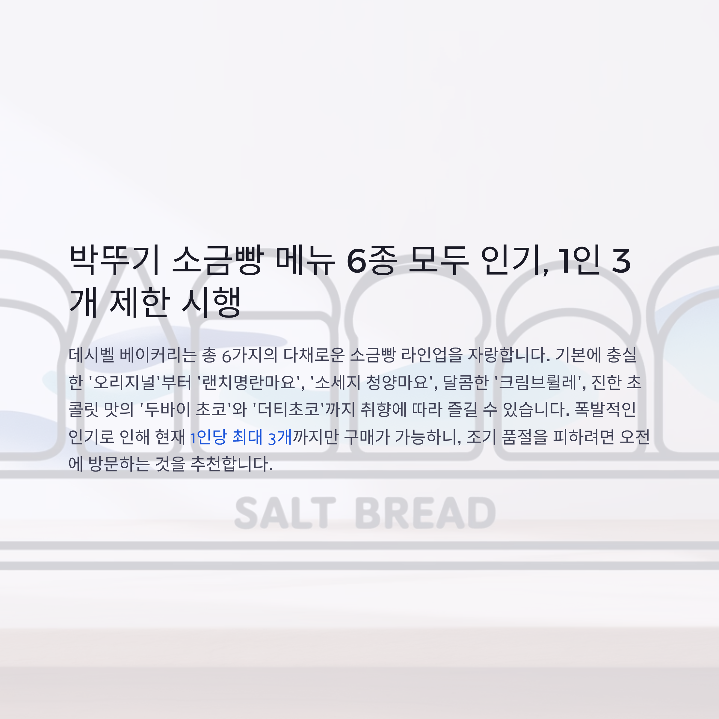 소금빵 6가지 라인업, 가격 정보