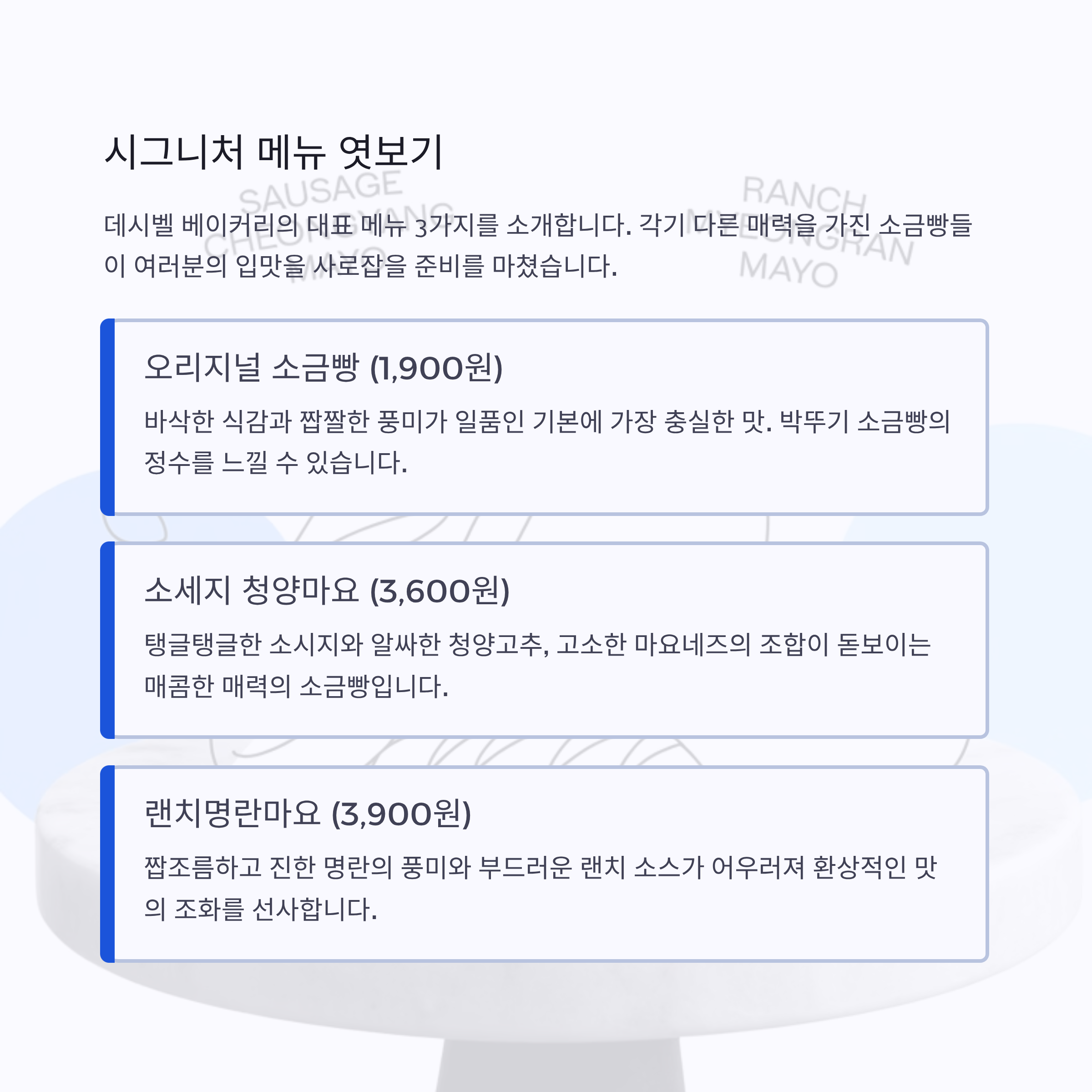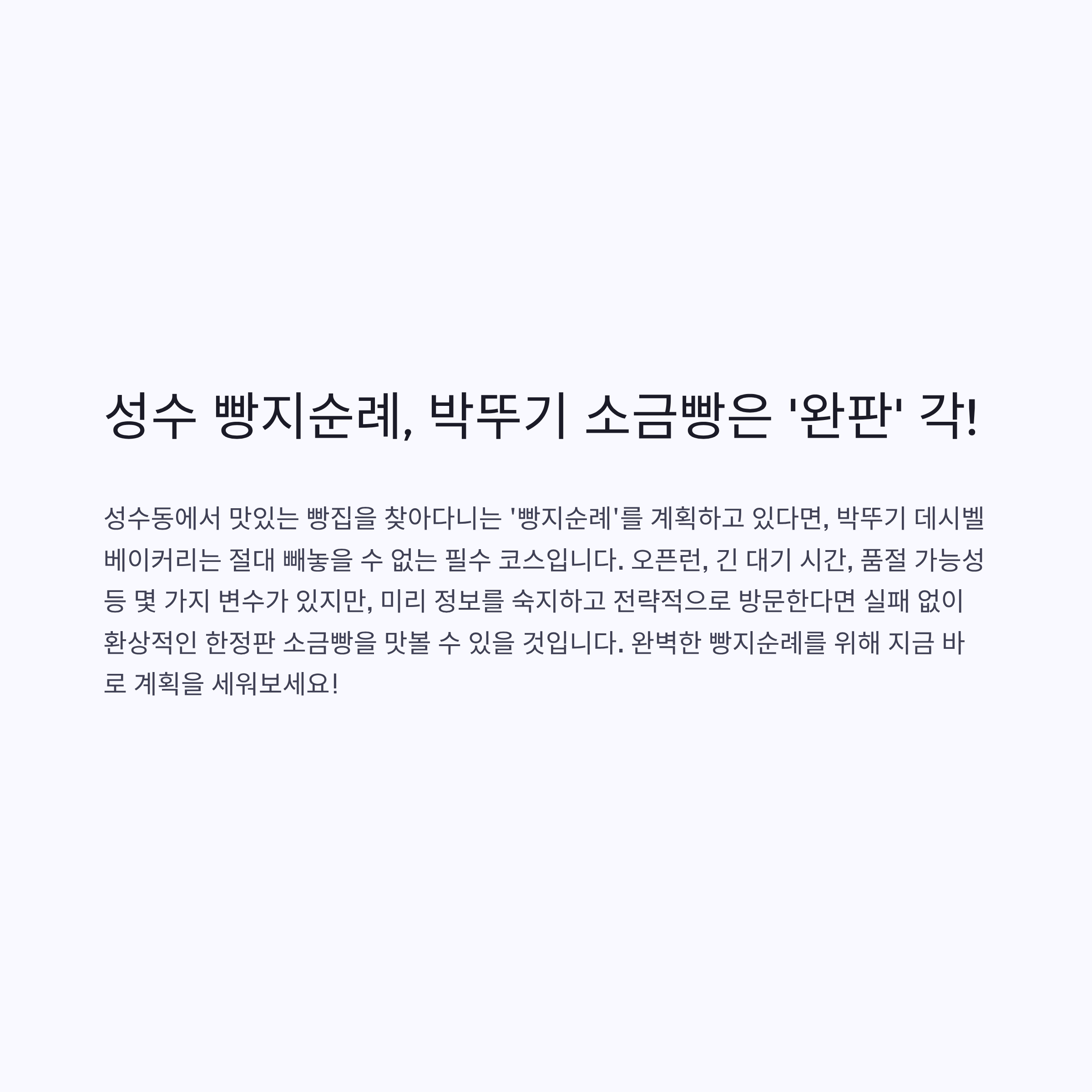 성수 데시벨에서는 시즌별 스페셜 소금빵 라인업을 추가로 선보일 계획이라는 정보도 있습니다. 스페셜 메뉴와 박뚜기님의 현장 방문 일정은 인스타그램으로 공지되니 공식 계정 팔로우 시 장기적으로 도움됩니다.