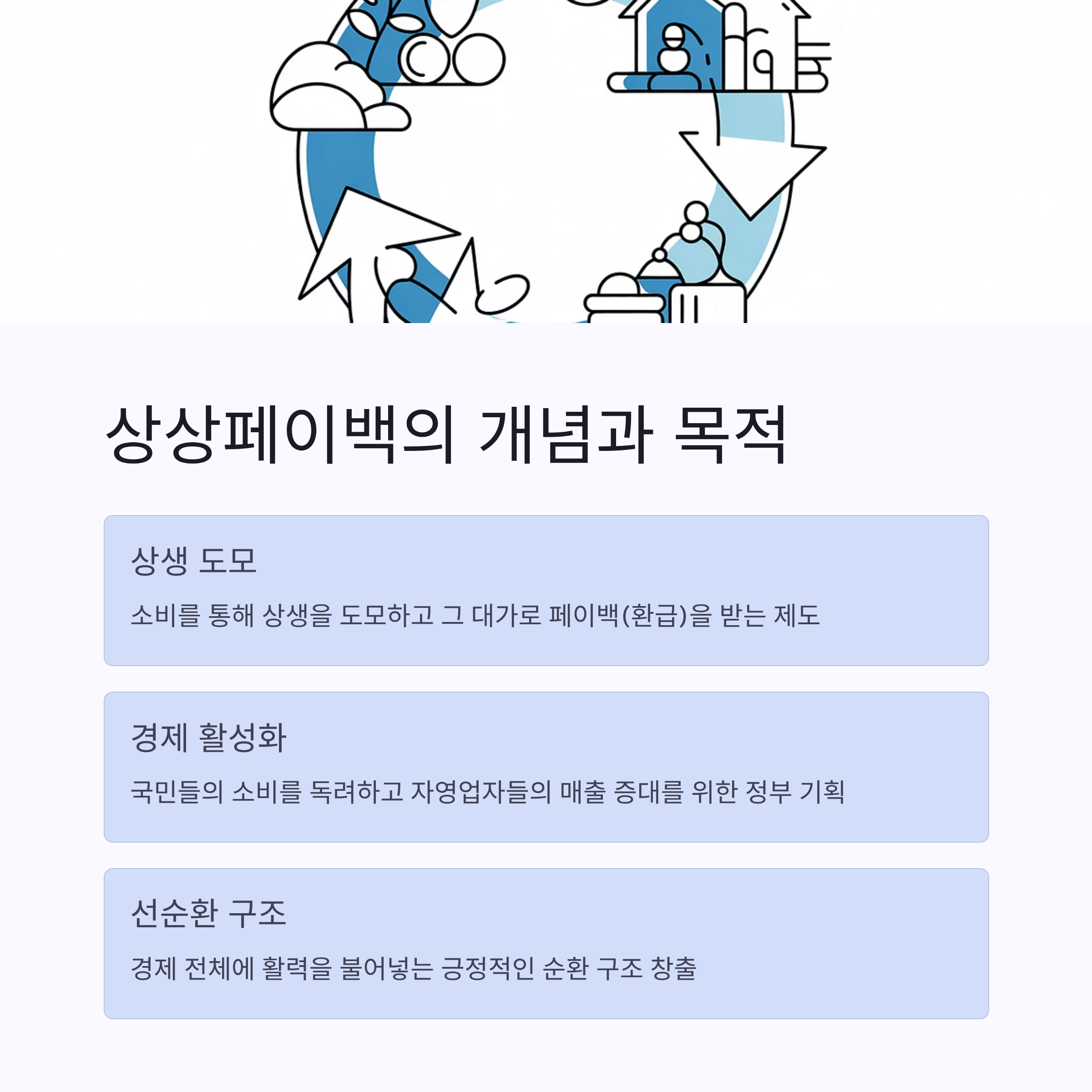 상상페이백은 말 그대로 소비를 통해 상생을 도모하고, 그 대가로 페이백(환급)을 받는 제도입니다. 정부는 국민들의 소비를 독려하고 자영업자들의 매출 증대를 위해 이런 제도를 기획했습니다. 단순히 돈을 쓰는 행위를 넘어, 경제 전체에 활력을 불어넣는 긍정적인 순환 구조를 만드는 것이 이 제도의 주요 목적입니다. 상상페이백은 국민들이 적극적으로 소비에 참여하도록 유도하는 동시에, 소비자들이 다시 혜택을 받음으로써 경제 활동의 선순환 구조를 만들어내는 중요한 역할을 하고 있습니다.