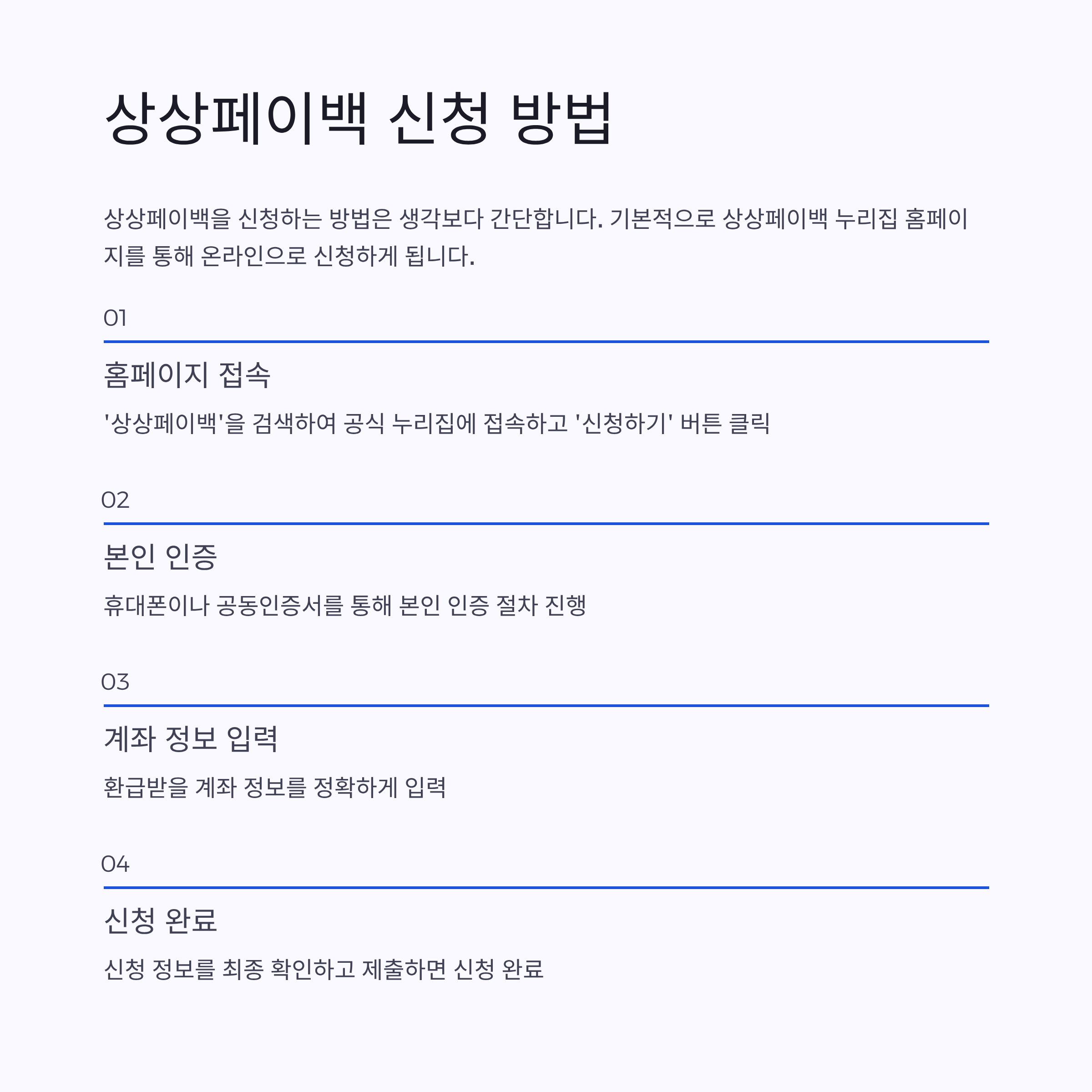 상상페이백을 신청하는 방법은 생각보다 간단합니다. 기본적으로 상상페이백 누리집 홈페이지를 통해 온라인으로 신청하게 됩니다.
