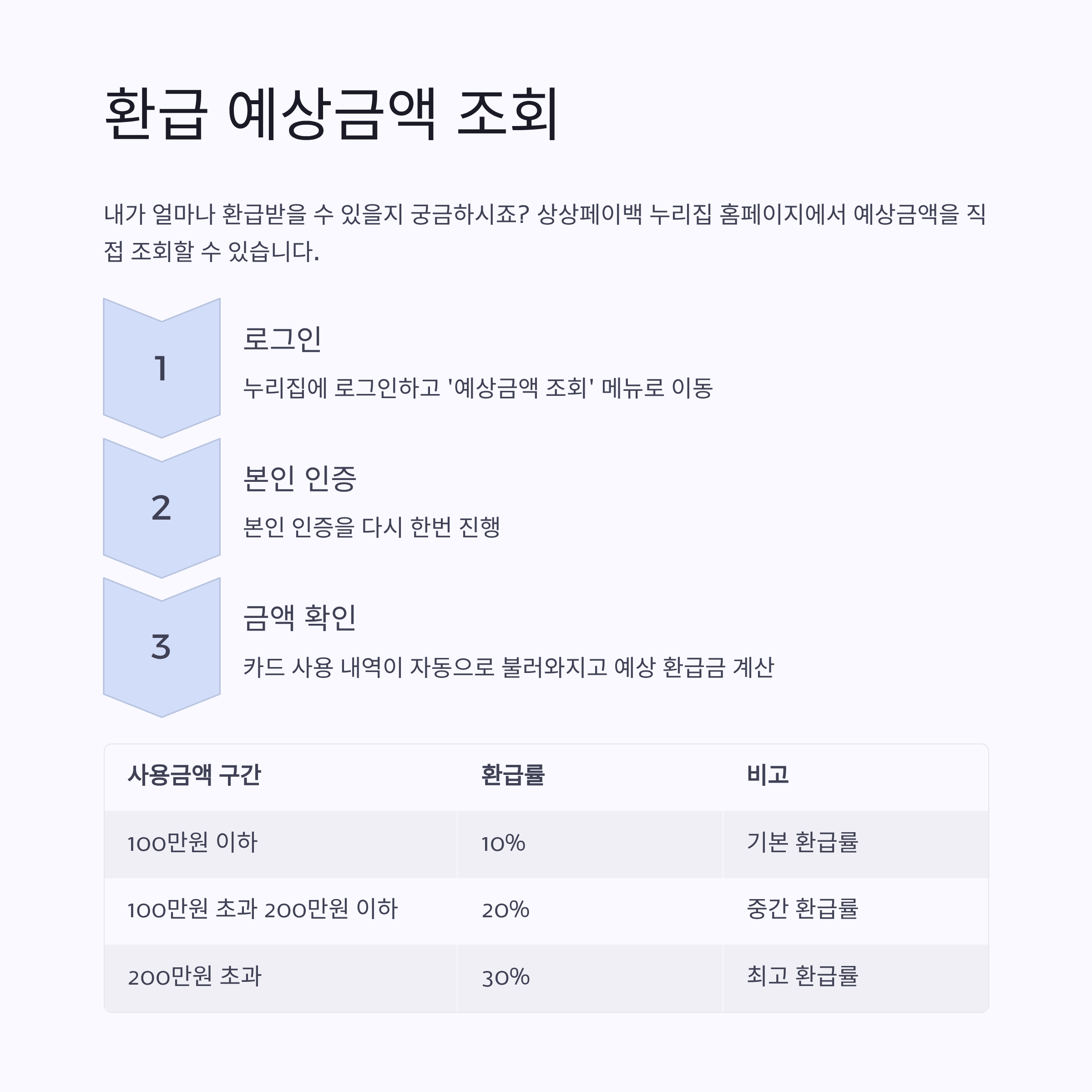 내가 얼마나 환급받을 수 있을지 궁금하시죠? 상상페이백 누리집 홈페이지에서 예상금액을 직접 조회할 수 있습니다.