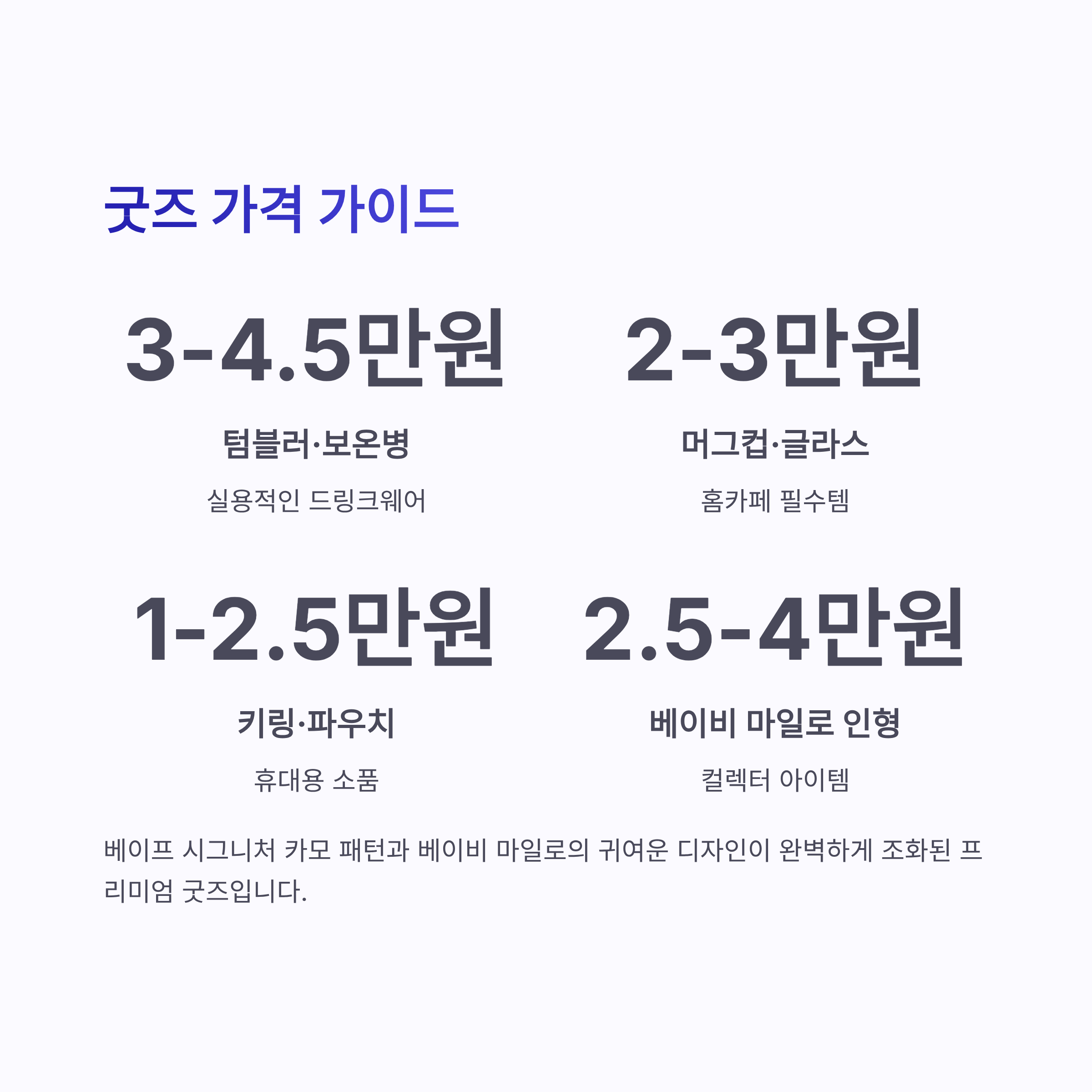 - 키링, 파우치, 카드지갑: 1만 ~ 2.5만 원