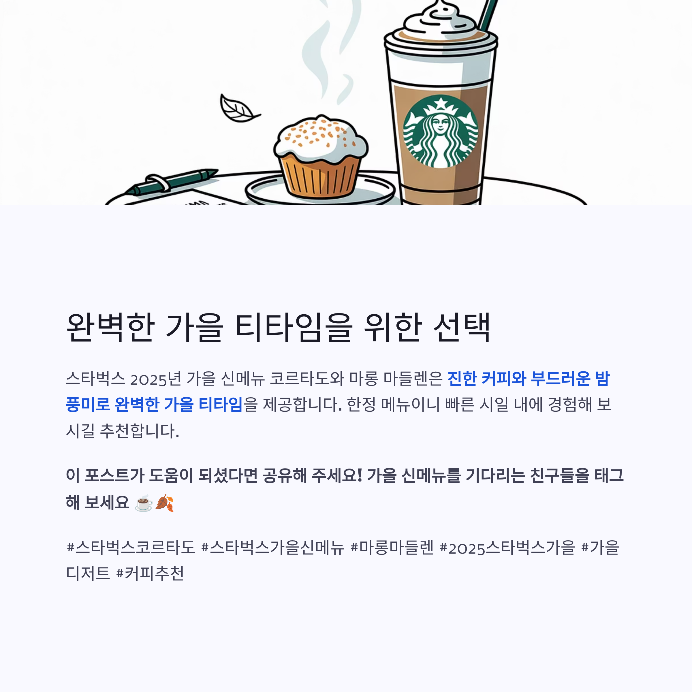 스타벅스 2025 코르타도와 마롱 마들렌 가을 신메뉴 추천