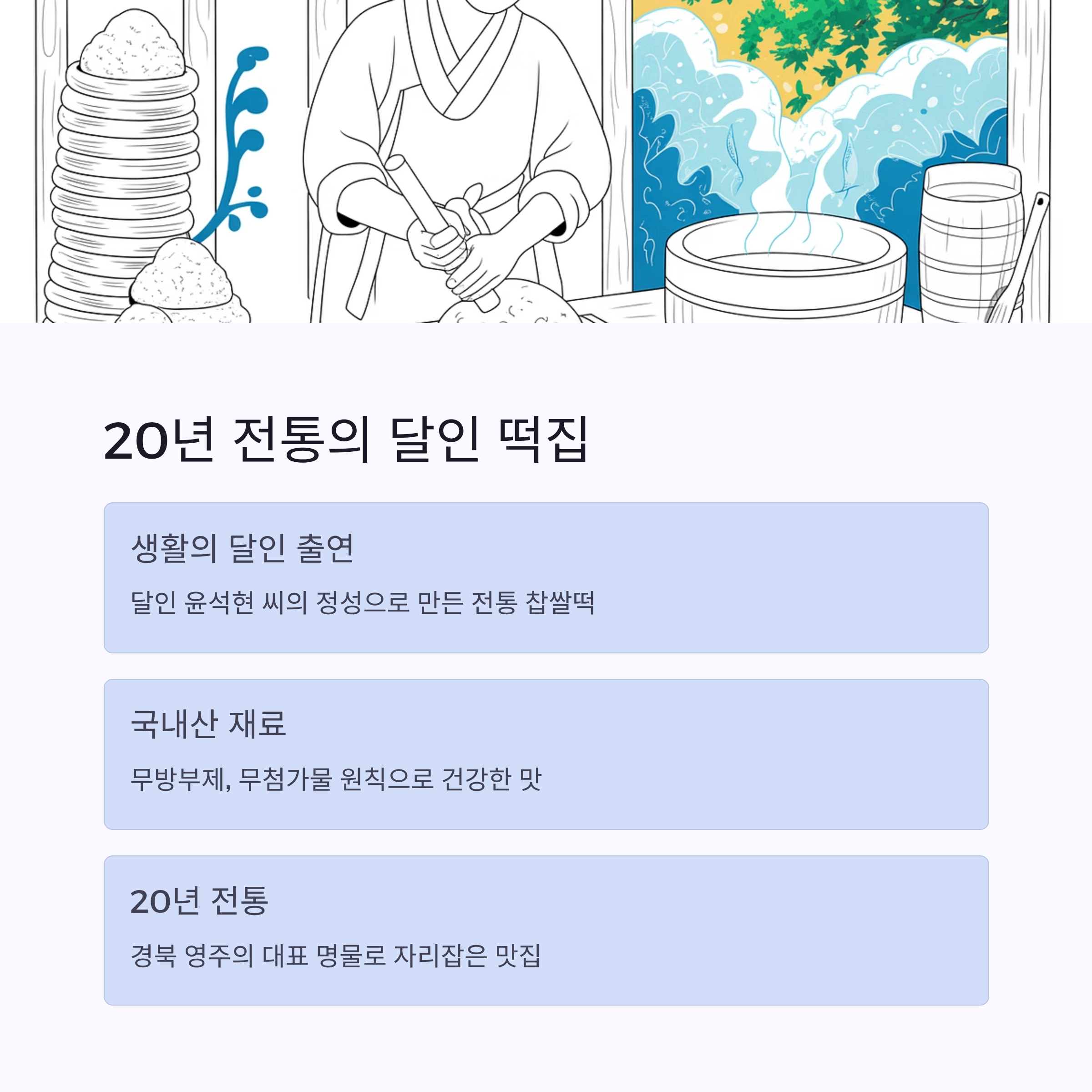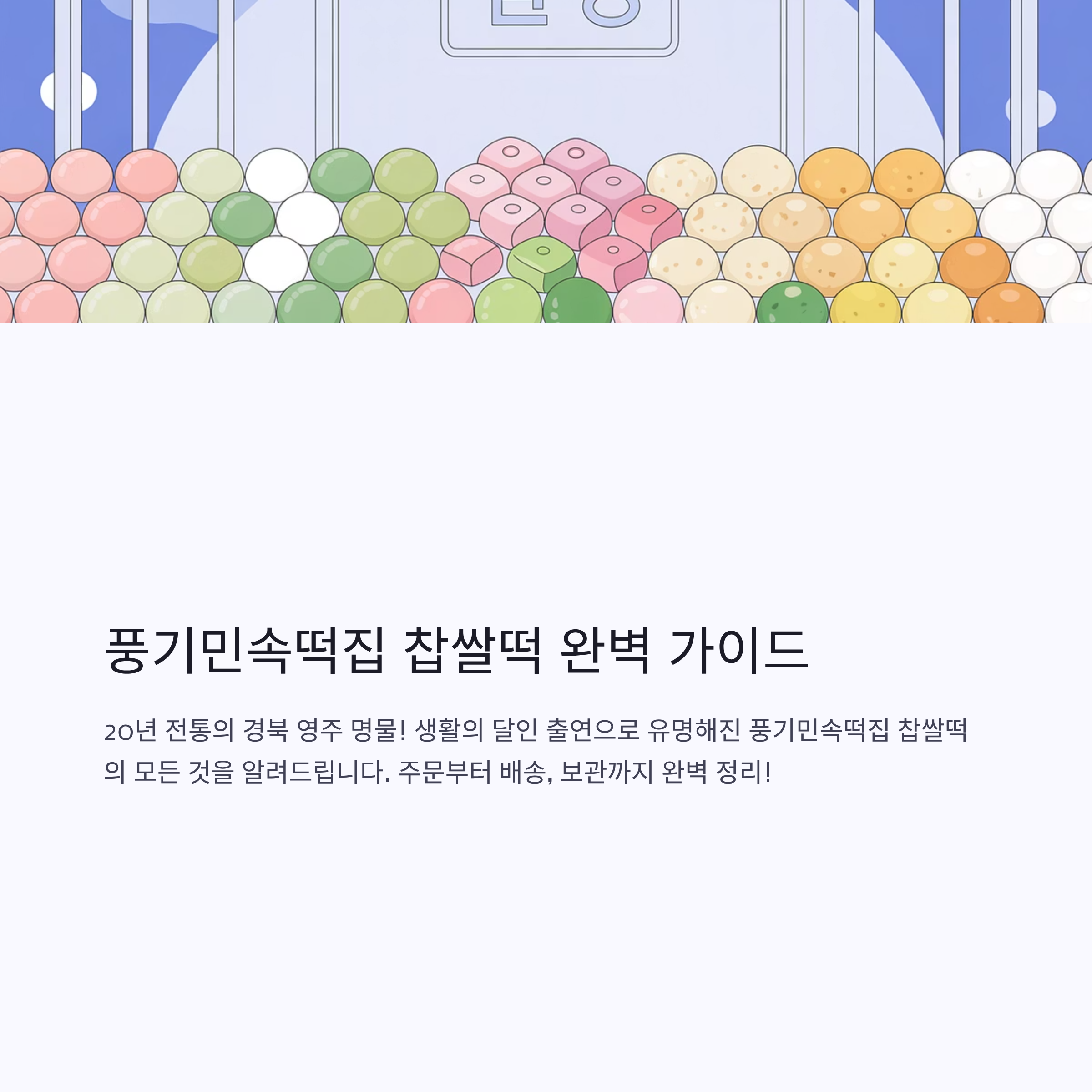 경북 영주의 명물인 풍기민속떡집 찹쌀떡은 20년 전통과 생활의 달인 출연으로 유명해진 맛집입니다. 국내산 재료와 달인 윤석현 씨의 정성으로 만든 찹쌀떡은 쫄깃함과 고소한 맛이 뛰어나 많은 이들의 사랑을 받고 있습니다. 이번 글에서는 직접 구매한 솔직한 후기와 함께 택배 주문, 배송, 보관 방법 등을 자세히 알려드립니다.