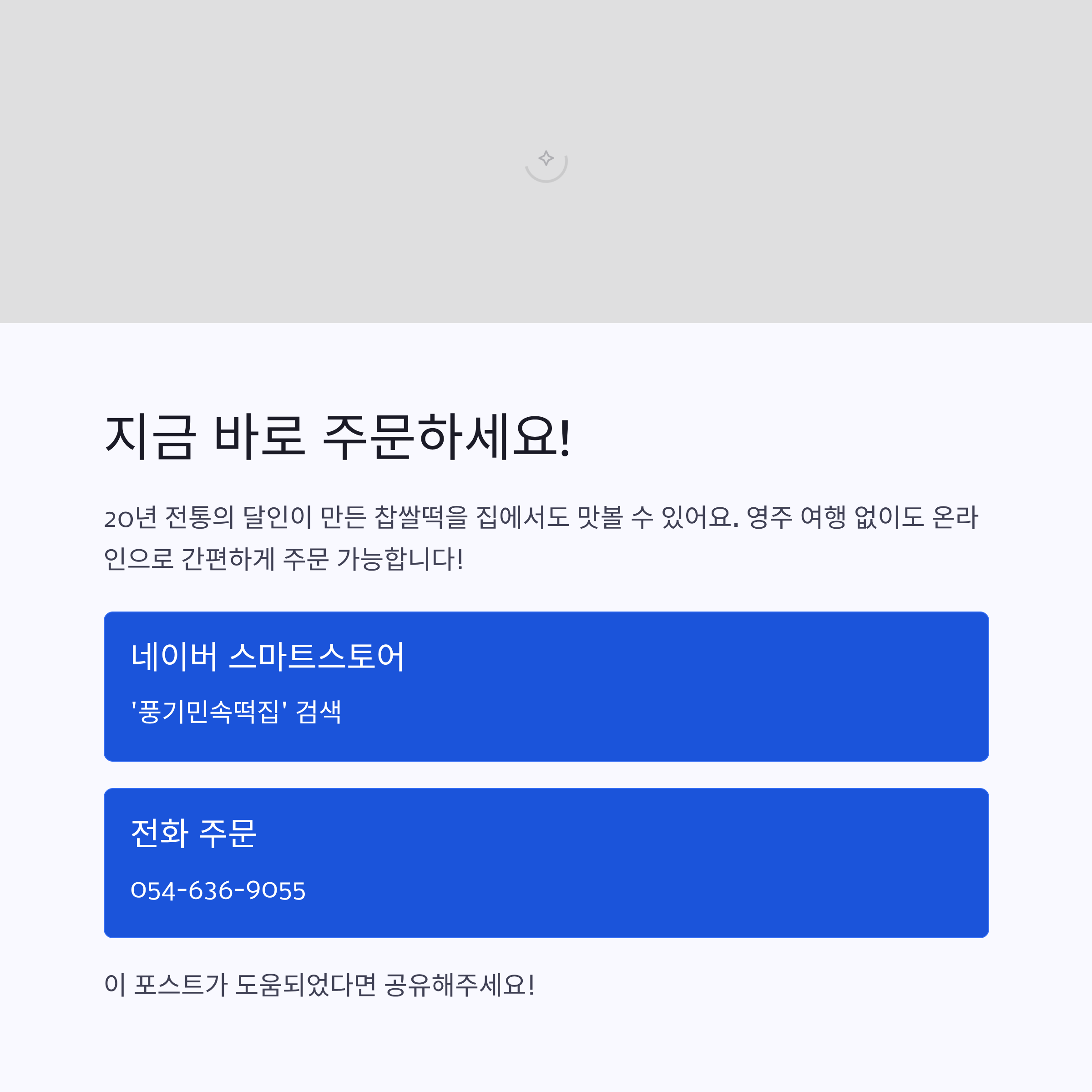- 주문처: 네이버 스마트스토어 ‘풍기민속떡집’ 또는 전화 054-636-9055