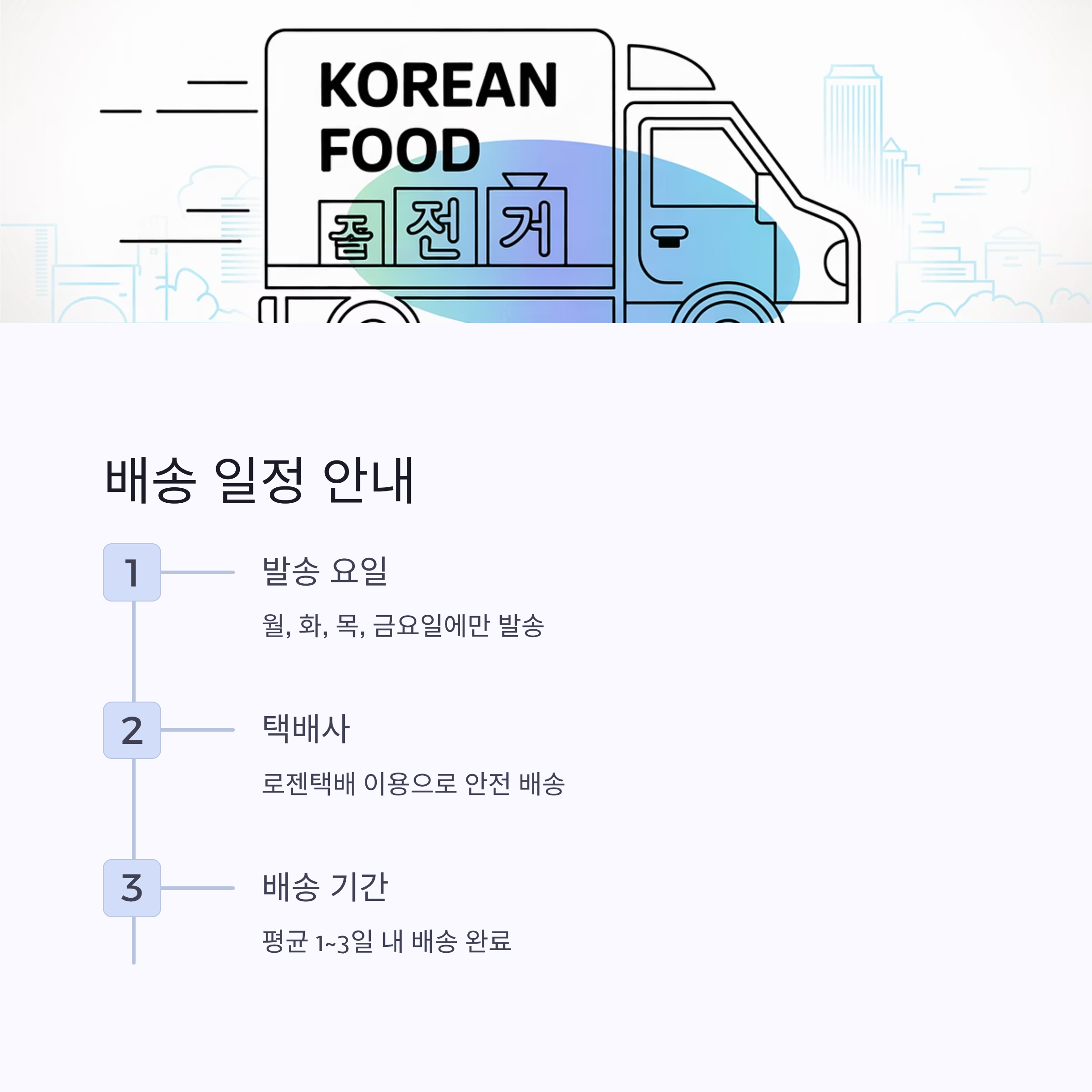 - 발송: 월, 화, 목, 금요일 로젠택배 이용, 평균 1~3일 배송
