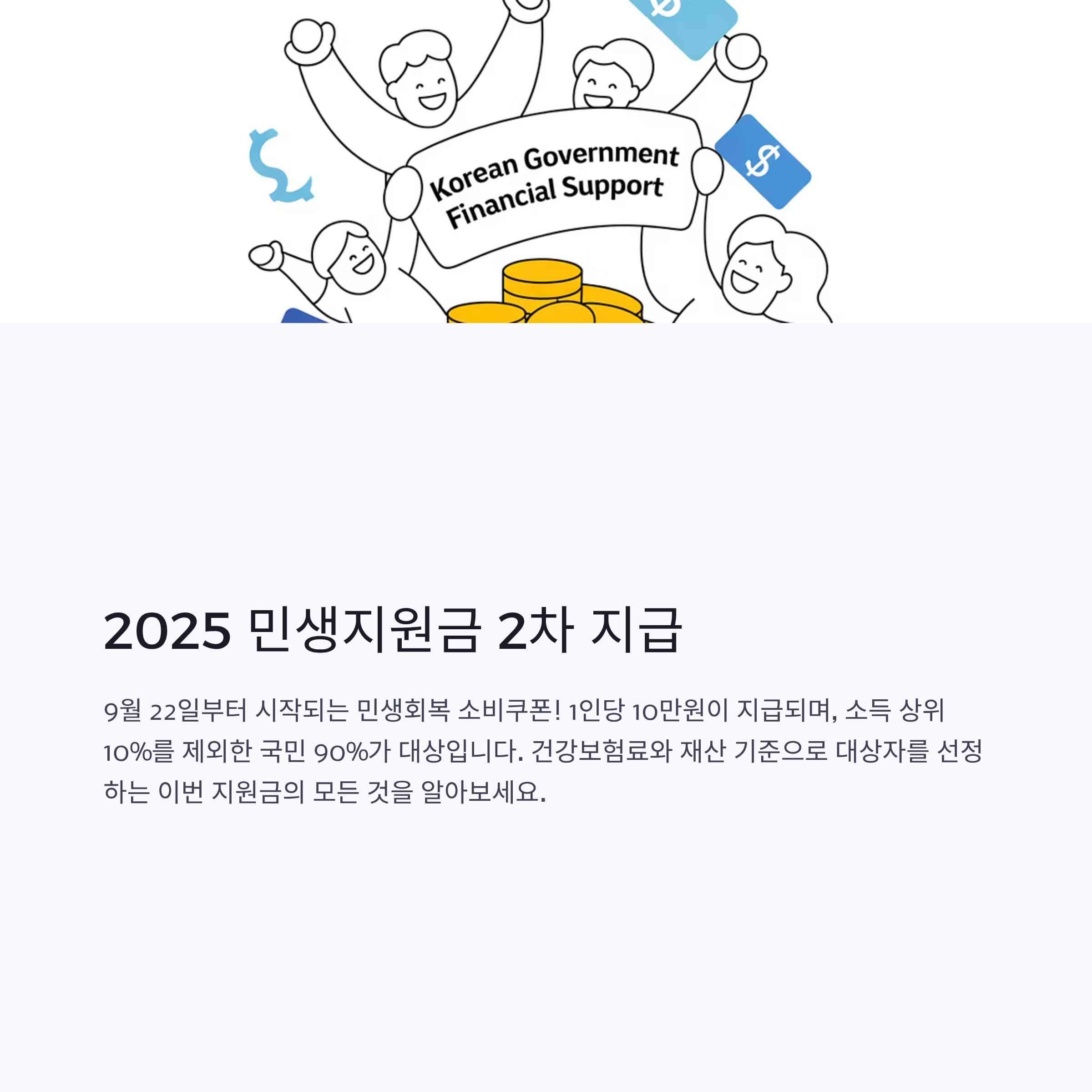 민생지원금 2차 지급이 2025년 9월 22일부터 시작됩니다. 이번에는 1인당 10만원이 지급되며, 소득 상위 10%는 제외되어 약 국민 90%가 대상입니다. 지급 대상 확인 방법은 건강보험료 기준과 재산·금융소득 기준을 합산하여 결정되며, 신청 방법과 지급일정을 정확히 안내드리겠습니다. 지원금 사용기한과 기준도 꼼꼼히 살펴봅니다.