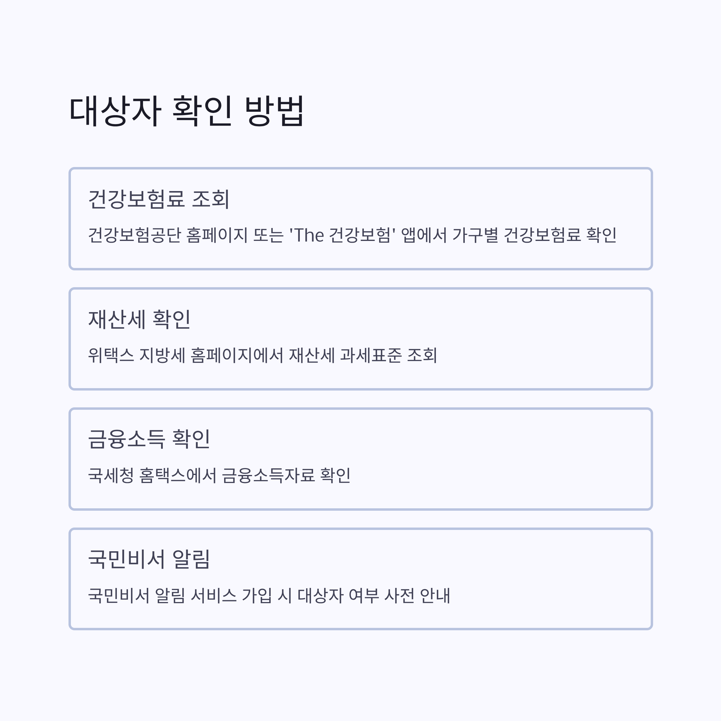 - 고액 자산가(재산 12억 초과, 금융소득 2,000만 초과) 사전 제외