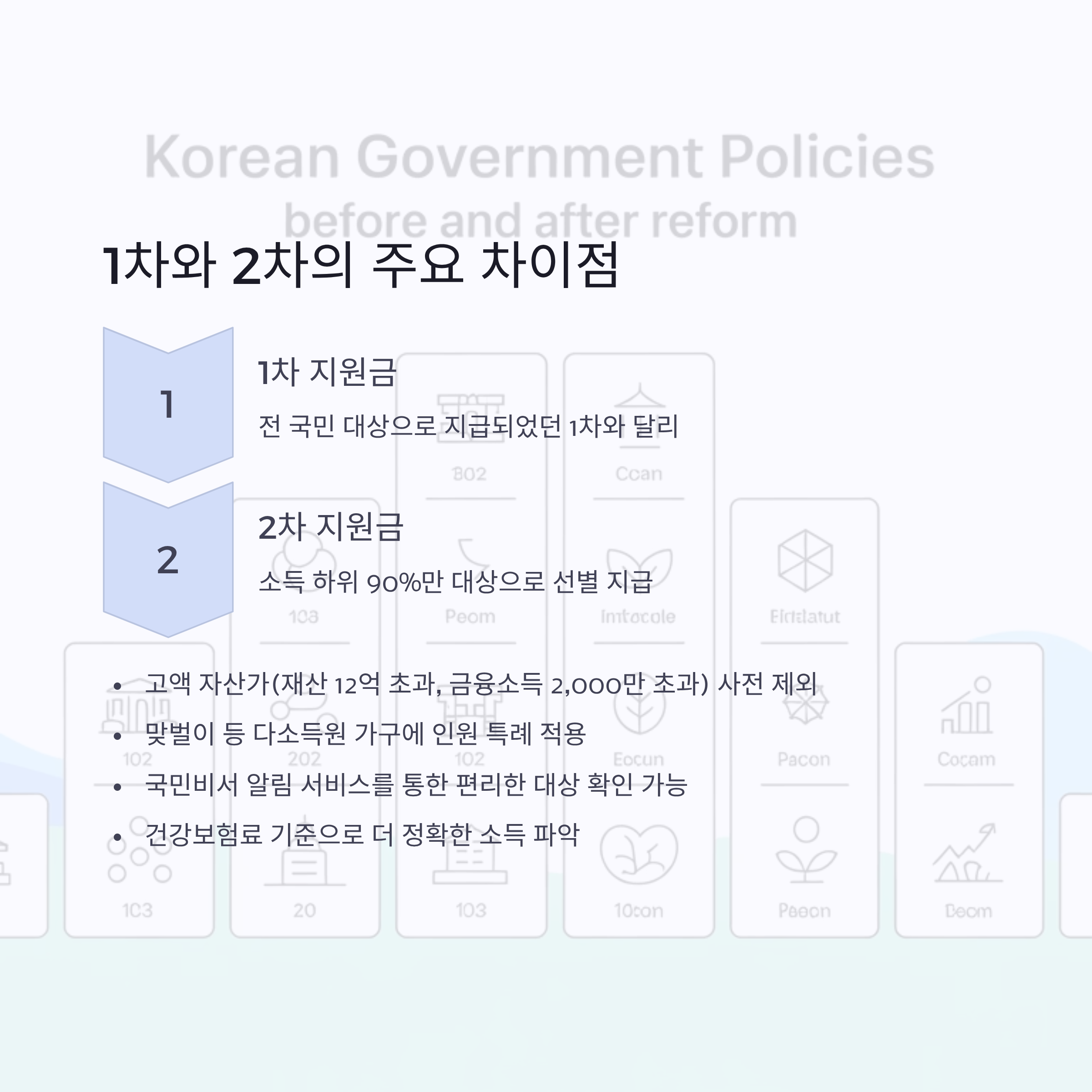 - 1차는 전 국민 대상, 2차는 소득 하위 90%에게 지급